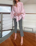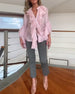 Shirt mit V-Ausschnitt und Laternenärmeln, bedruckt