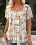 Bluse Quadratischer Ausschnitt Lässig Plissiert Bedruckt