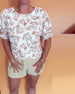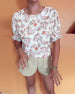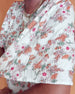 Lässige bluse mit kapuze und blumenmuster und kurzen ärmeln