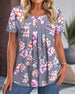 Lässige bluse mit kapuze und blumenmuster und kurzen ärmeln