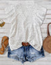 Lässiges oberteil mit schmetterlingsspitzen-patchwork und tasche