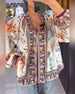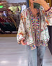 Shirt mit V-Ausschnitt und Laternenärmeln, bedruckt