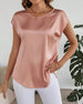 Lässiges, einfarbiges oberteil mit pailletten und v-ausschnitt