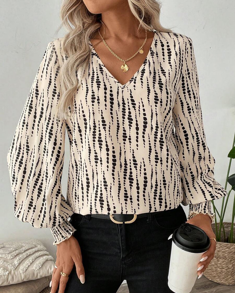 Shirt mit V-Ausschnitt und Laternenärmeln, bedruckt