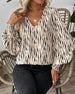 modische bluse mit leopardenmuster und V-ausschnitt sowie patchwork-spitze