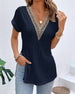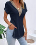 Top Mode einfarbig Häkelspitze Ärmel Patchwork
