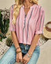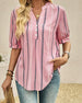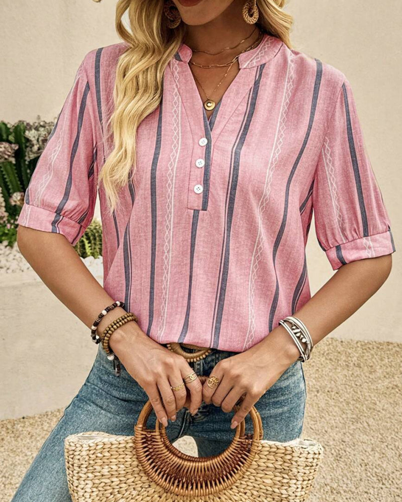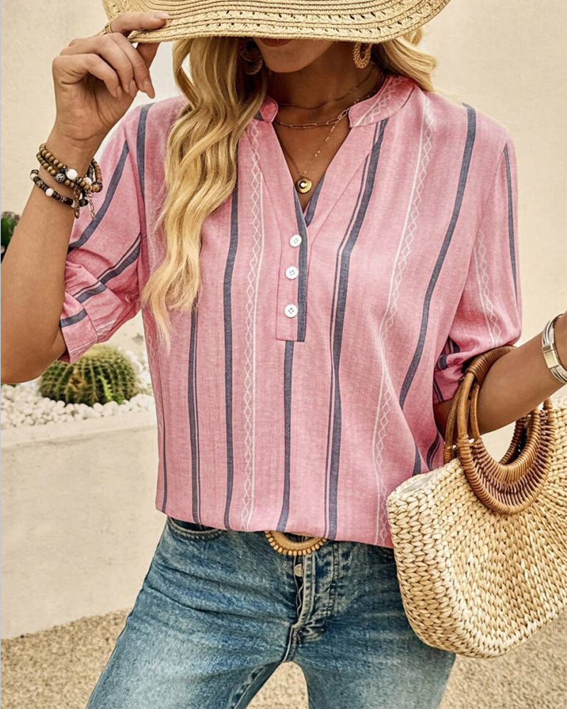Lässige, einfarbige Bluse mit V-Ausschnitt und Knopf
