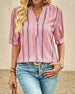 Modische bluse mit V-ausschnitt und laternenärmeln in einfarbiger farbe