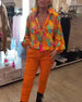 Modische hose in einfarbiger farbe mit unregelmäßigem patchwork und taschen