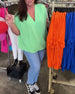 Lässige, einfarbige Bluse mit V-Ausschnitt und Knopf