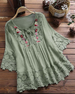 Top Mode einfarbig Häkelspitze Ärmel Patchwork