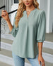 Modische bluse mit V-ausschnitt und laternenärmeln in einfarbiger farbe