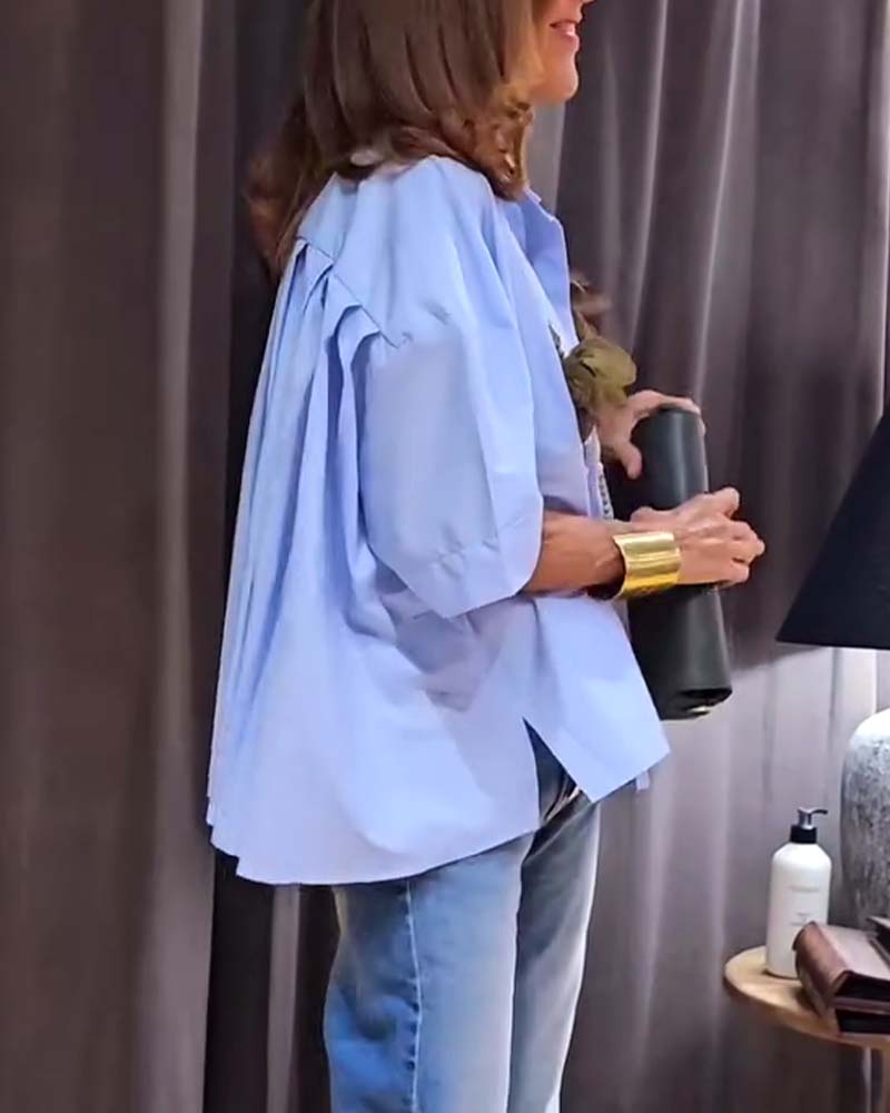 Lockere einfarbige Bluse mit langen Ärmeln
