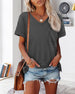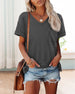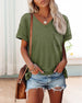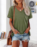 Einfarbiges Kurzarm-T-Shirt mit V-Ausschnitt und Tasche