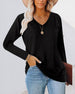Schlichtes, einfarbiges, elegantes Langarm-Top mit V-Ausschnitt
