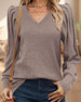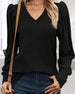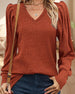Modische bluse mit V-ausschnitt und laternenärmeln in einfarbiger farbe