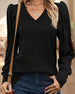 Schlichtes, einfarbiges, elegantes Langarm-Top mit V-Ausschnitt