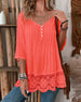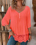 Top Mode einfarbig Häkelspitze Ärmel Patchwork