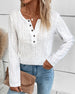 Lässiges, einfarbiges langarmhemd mit v-ausschnitt und knopfleiste