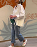 Lässiges oberteil mit schmetterlingsspitzen-patchwork und tasche