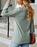 Schlichtes, einfarbiges, elegantes Langarm-Top mit V-Ausschnitt