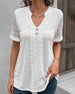 Einfarbiges Spitzen-T-Shirt mit V-Ausschnitt
