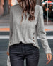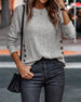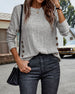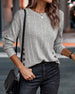 Schlichtes, einfarbiges, elegantes Langarm-Top mit V-Ausschnitt