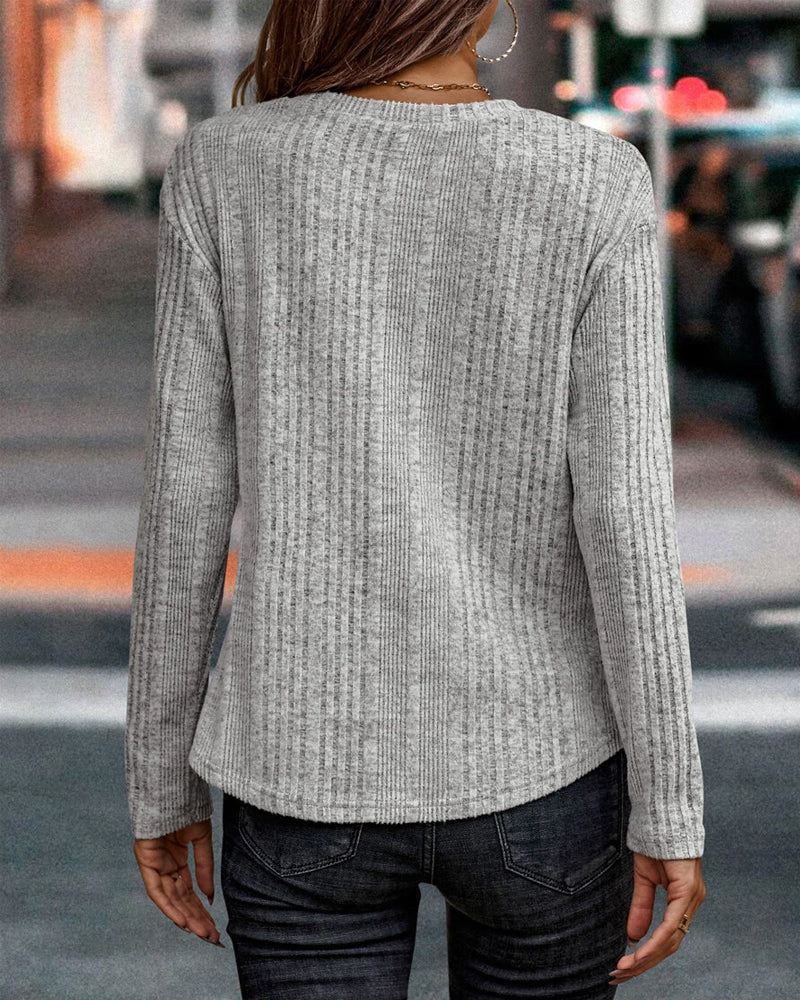 Lässiges, einfarbiges langarmhemd mit v-ausschnitt und knopfleiste
