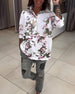 Lässige bluse mit kapuze und blumenmuster und kurzen ärmeln