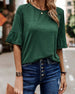 Modische bluse mit V-ausschnitt und laternenärmeln in einfarbiger farbe