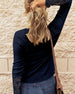 Schlichtes, einfarbiges, elegantes Langarm-Top mit V-Ausschnitt