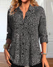 modische bluse mit leopardenmuster und V-ausschnitt sowie patchwork-spitze