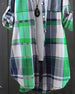 Bunt bedrucktes taschenkleid mit v-ausschnitt und halbarm