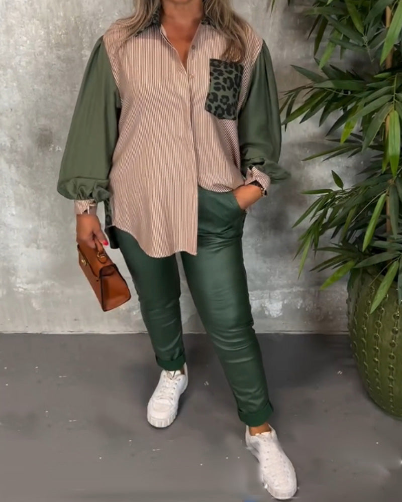 Hemd mit leopardenmuster und reverslaternenärmeln