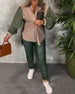 Modische hose in einfarbiger farbe mit unregelmäßigem patchwork und taschen