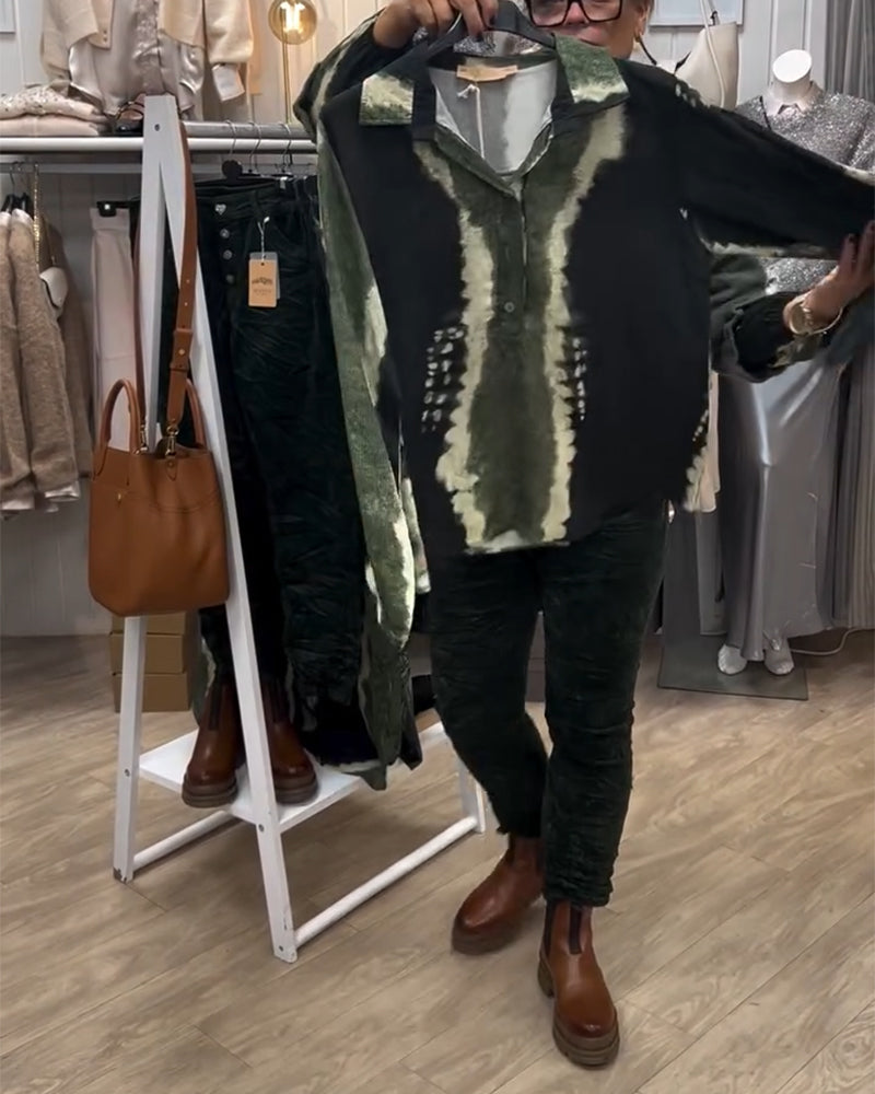 Bedrucktes Langarmshirt mit V-Ausschnitt