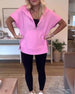 Lässige bluse mit kapuze und blumenmuster und kurzen ärmeln