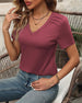 Lässiges, einfarbiges oberteil mit pailletten und v-ausschnitt