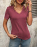 Kurzärmeliges T - Shirt Mit V - Hals Und Einfärbigem Design