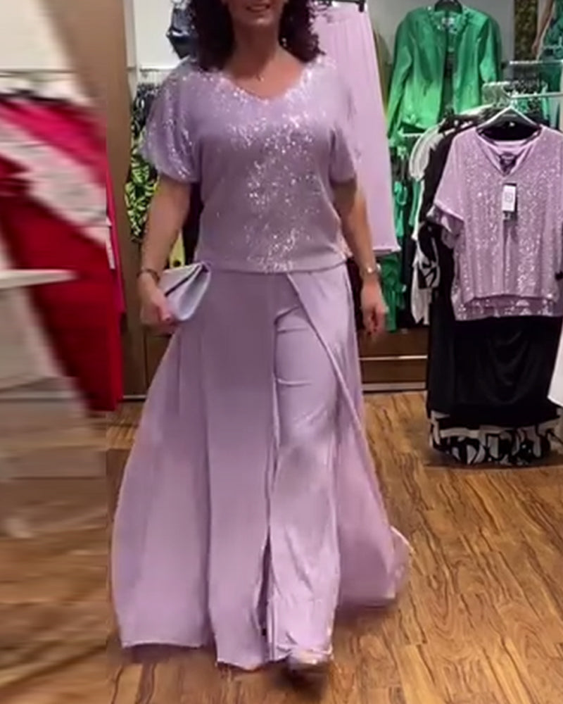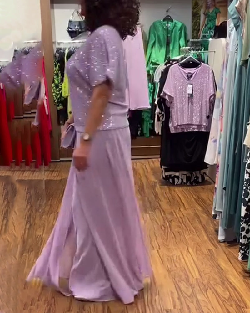 Kurzärmlige, lockere paillettenbluse mit v-ausschnitt