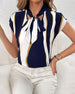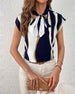 Kurzärmlige Schnürbluse mit Kontrastdruck