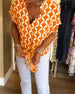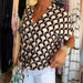 modische bluse mit leopardenmuster und V-ausschnitt sowie patchwork-spitze