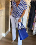Lose bedruckte Bluse mit langen Ärmeln