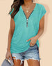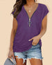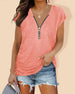 Kurzärmliges T-Shirt mit V-Ausschnitt und Reißverschluss