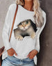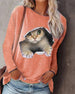 Loses Katzen-Sweatshirt mit Farbblock
