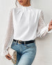 Top Mode einfarbig Häkelspitze Ärmel Patchwork