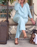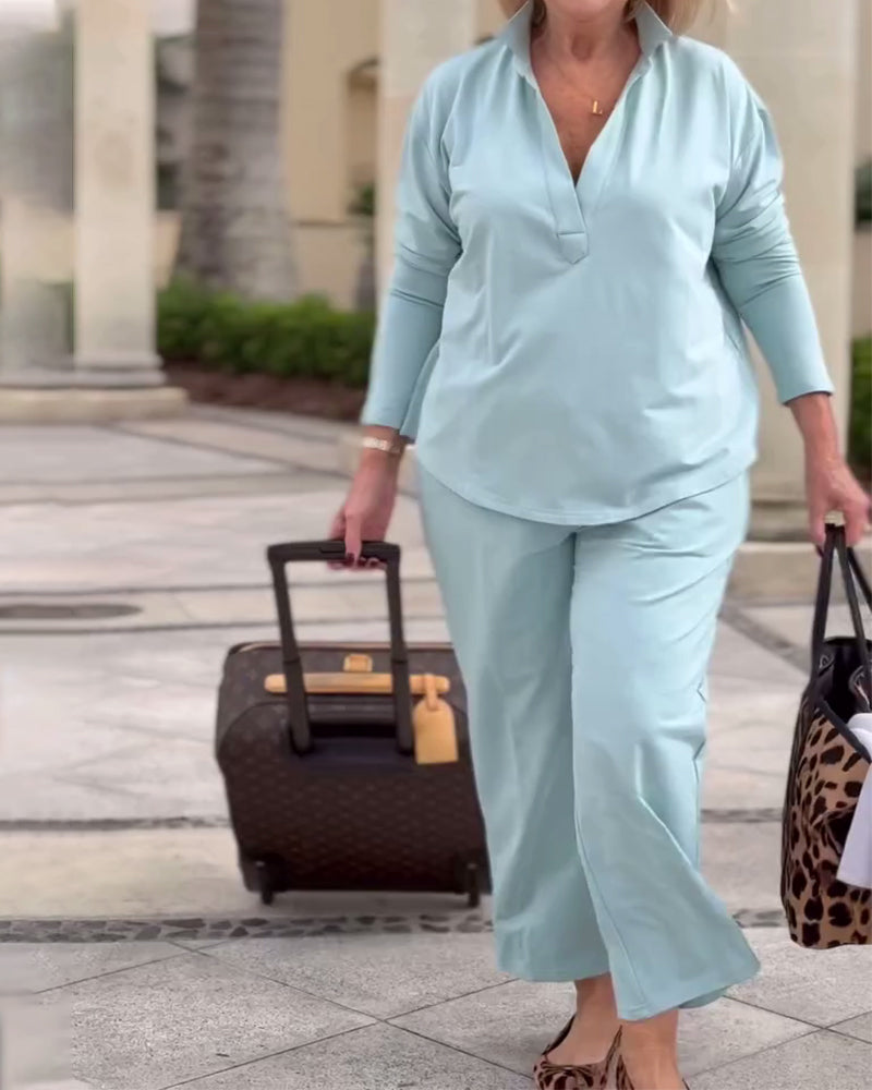 Schlichtes, einfarbiges, elegantes Langarm-Top mit V-Ausschnitt
