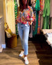 Bedrucktes Langarmshirt mit V-Ausschnitt