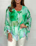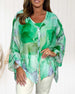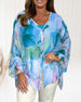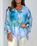 Shirt mit V-Ausschnitt und Laternenärmeln, bedruckt