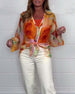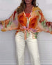 Lässig bedruckte langarmbluse mit v-ausschnitt